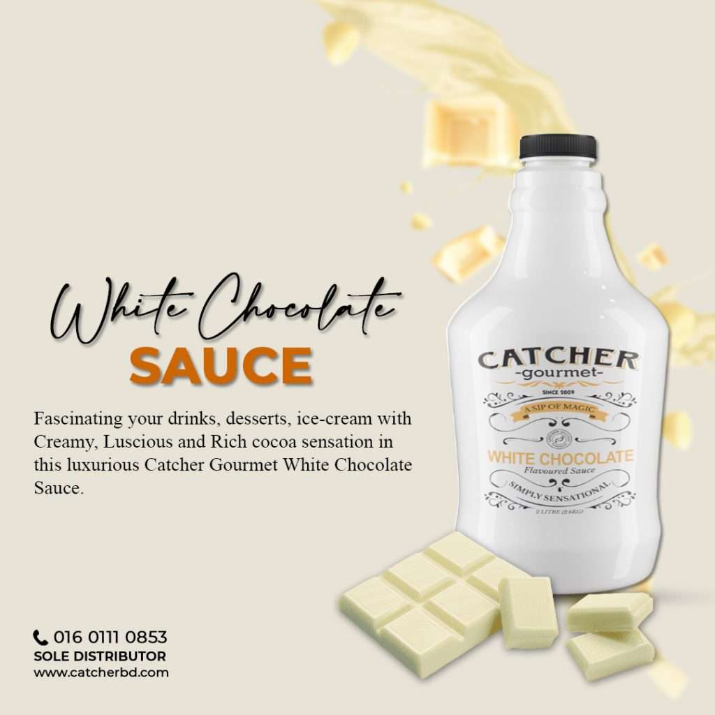 Fascinating your drinks, desserts, ice-cream with Creamy, Luscious and Rich cocoa sensation in this luxurious Catcher Gourmet White Chocolate Sauce. Catcher Gourmet Sauce. Simply Sensational.   Net Weight: 2 Litre (2.6KG)